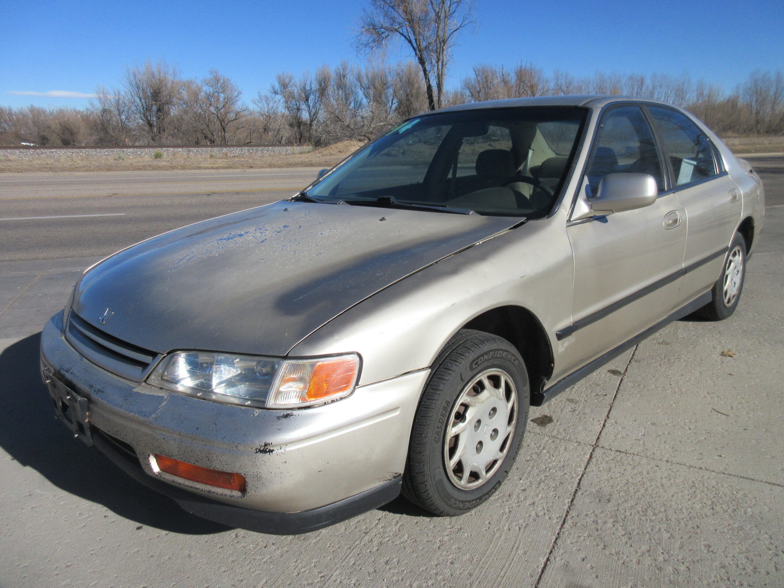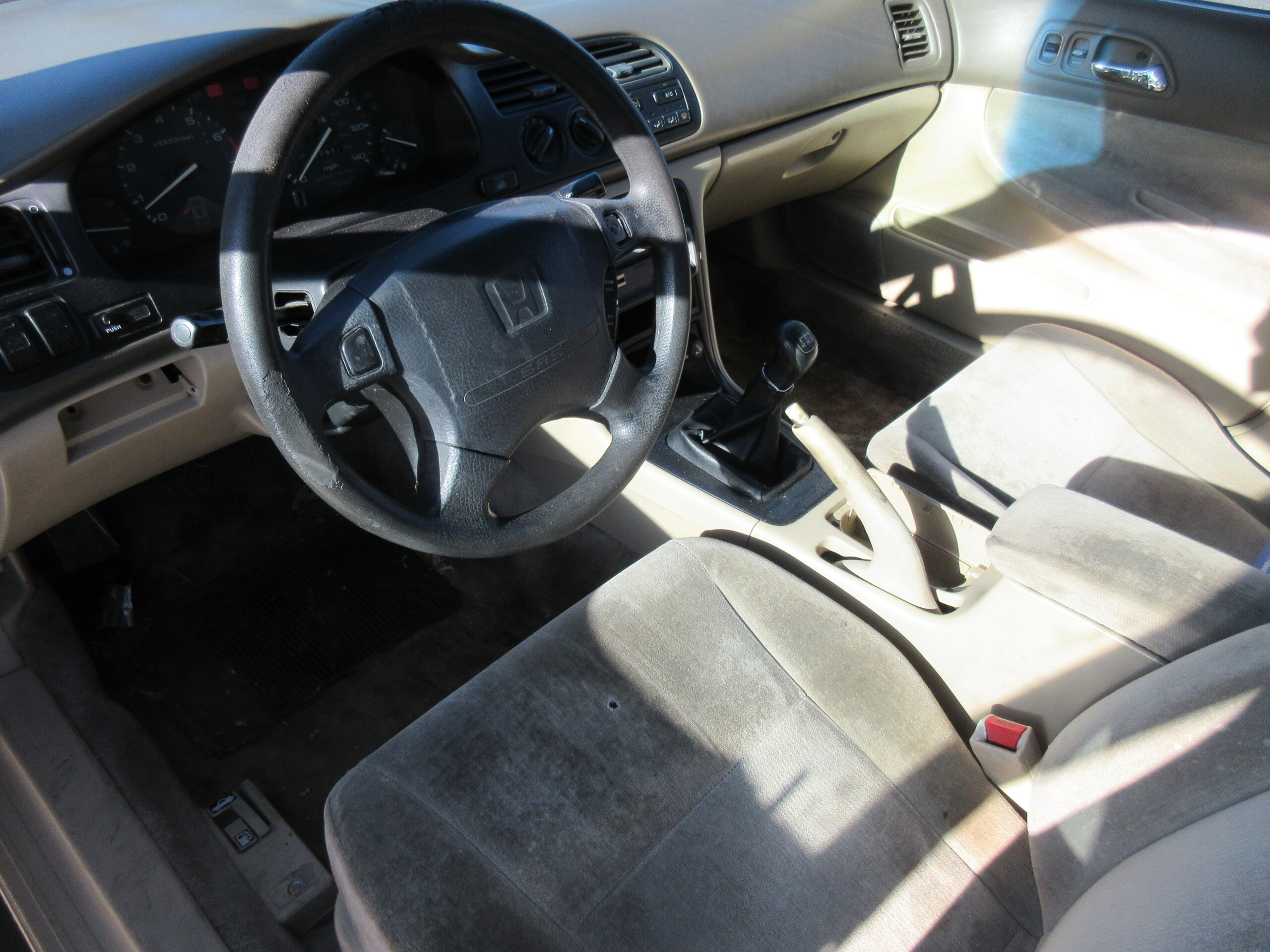 This Accord gets 22 miles per gallon in the city and 29 mpg on the highway. 220K, 5 Speed Manual, Auxiliary Input, Bluetooth.